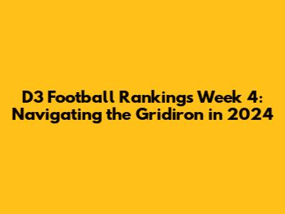 Hey football fanatics! Week 4 of the D3 football season is upon us, and the gridirons are sizzling with action! We're talking about a whirlwind of upsets, nail-biting finishes, and the constant reshuffling of the D3 football rankings. This year's competition is shaping up to be one for the books, with teams battling it out for those coveted playoff spots. As we dive into the latest rankings, let's break down the top contenders, potential dark horses, and what you can expect from the thrilling Week 4 matchups. Get ready for some serious football analysis, guys – this is where the excitement kicks into high gear!