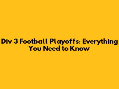 Div 3 Football Playoffs: Everything You Need To Know