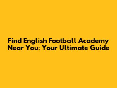 Find English Football Academy Near You: Your Ultimate Guide