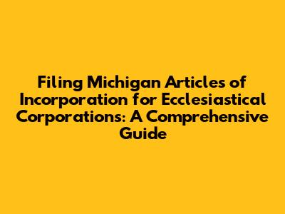 So, you're looking to establish a church or other religious organization in the great state of Michigan? That's fantastic! But before you can officially start spreading the good word, you'll need to navigate the process of filing Articles of Incorporation, specifically for an ecclesiastical corporation. Don't worry, guys, it might sound intimidating, but we're here to break it down for you in a way that's easy to understand. This comprehensive guide will walk you through each step, ensuring you're well-equipped to handle the process with confidence. We'll cover everything from understanding the basics of ecclesiastical corporations to filling out the forms correctly and avoiding common pitfalls. Think of this as your friendly roadmap to legally establishing your church in Michigan. Let’s dive in and get this done! Remember, the key is to be thorough and patient. The effort you put in now will pay off in the long run by ensuring your organization is legally sound and ready to serve your community. We'll also touch on some best practices for maintaining your corporate status once you're up and running, because that's just as important as the initial filing. So grab a cup of coffee, settle in, and let's get started on this exciting journey of bringing your ecclesiastical vision to life in Michigan!