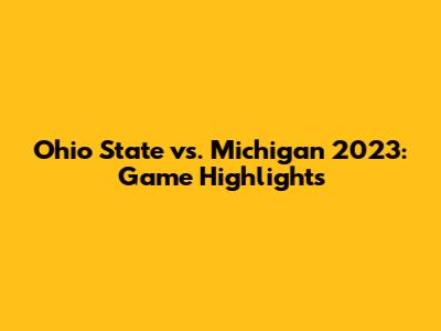 Ohio State Vs. Michigan 2023: Game Highlights